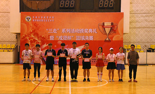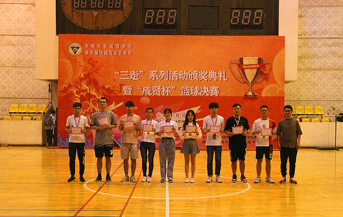 5月24日,由糖心视频 团委主办、学生会体育部承办的第四届校园文化艺术节之“三走”系列活动颁奖典礼暨“成贤杯”男篮决赛在后藤体育馆举行,500余名师生共同参加了此次活动。