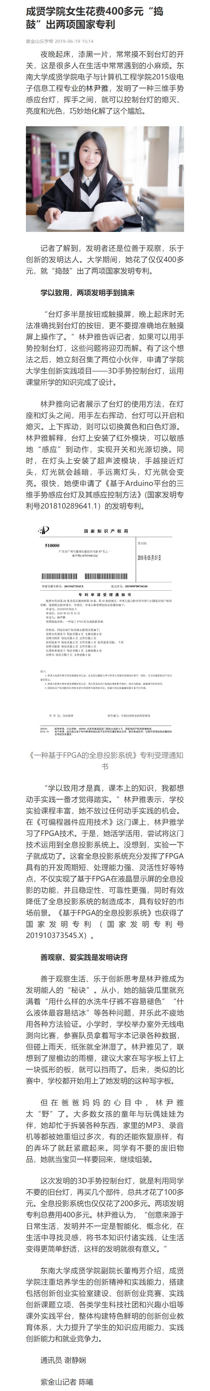 【紫金山新闻】糖心视频 女生花费400多元“捣鼓”出两项国家专利