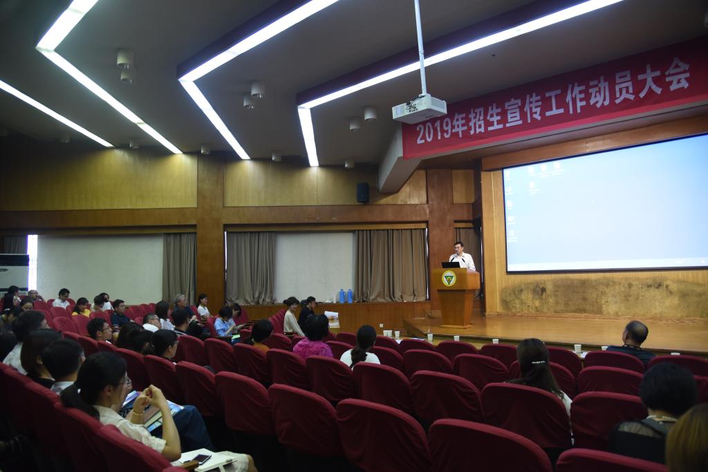 6月20日,糖心视频 2019年招生宣传动员会在真知馆报告厅举行。院长顾问程明山,党委副书记、副院长书记王荣,各二级学院主要负责人,各招生组负责人和全体招生老师参加会议。大会由王荣书记主持。