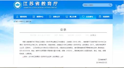 2019年江苏省独立学院一流专业统计