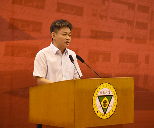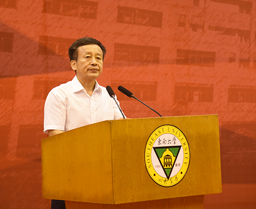 教师代表土木与交通工程学院院长郭正兴教授代表全体教师发言。郭正兴教授是全国工程领域权威专家,他结合自身学习、科研的经历,深入浅出地讲述了“专业各不同,行行出状元”“师傅领进门,修行靠自己”“智商决定起点,情商决定终点”等道理,并勉励新生跟随时代发展,不断更新知识,持续创新,实现新梦想。