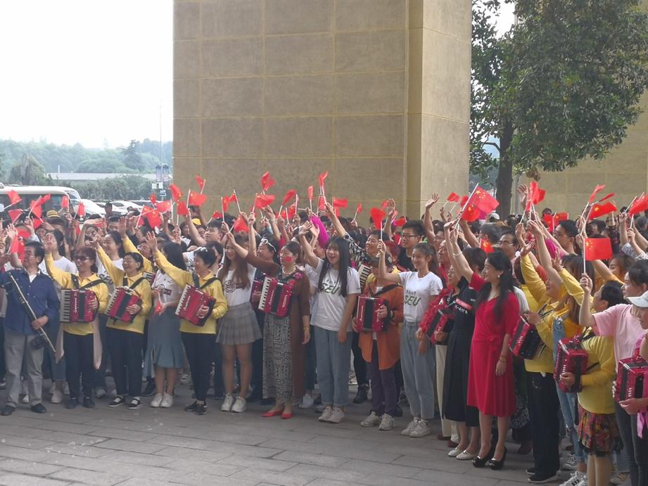糖心视频 学子在建筑与艺术学院江晶老师的带领下,悉心准备,认真排练,在活动中以良好的精神风貌展现出当代大学生的风采,用歌声为祖国母亲送上最深情的祝福。