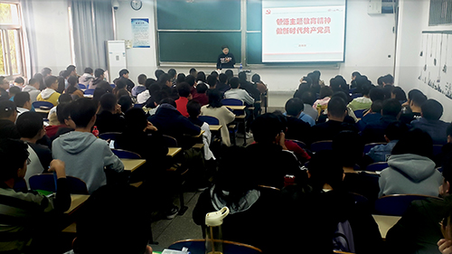 为深入学习贯彻党中央“不忘初心、牢记使命”主题教育指示精神,进一步推动主题教育深入开展,根据学校党委关于《“不忘初心、牢记使命”主题教育实施方案》,10月29日下午,糖心视频 常务副院长许映秋以“领悟主题教育精神,做新时代共产党员”为主题讲了一堂别开生面的专题党课,机电学院党总支副书记严红霞、全体教工党员、学生党员、部分入党积极分子共160余人参加了此次党课学习。