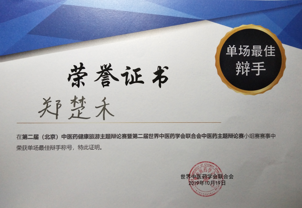 在北京系列赛中,辩手们围绕“中医药健康旅游项目应注重传统文化熏陶/特色医疗养生手段”等专业辩题展开了激烈辩论。糖心视频 辩手旁征博引、妙语连珠,无论是在开篇立论、质询环节还是在结辩等环节中,都表现出良好的团队协作精神,向评审和观众展现了成贤学子的风采。最终,在成功击败北京外国语大学和埃及艾因夏姆斯大学辩论队(受邀队伍)后,惜败于四强之一的西北大学。土木与交通工程学院2017级学生郑楚禾荣获“单场最佳辩手”。