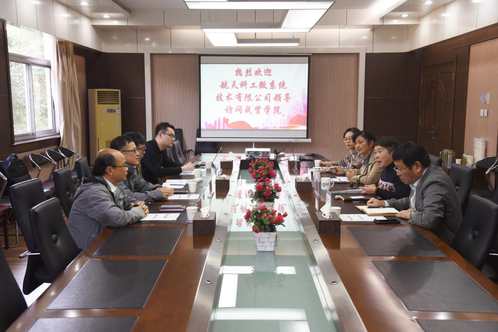 常务副院长许映秋首先代表学校对航天科工微系统技术有限公司领导一行表示欢迎,并介绍了学校概况、办学定位、专业设置和师资队伍等方面情况。随后,航天科工微系统技术有限公司周明董事长介绍了公司基本情况,计划经营部部长孙浩详细介绍了航天科工微系统技术有限公司的组织架构、研究方向、产品与服务等情况。该公司隶属于航天工业发展股份有限公司,位于南京市江北新区,是国内微系统专业研发、制造的核心单位,提供从芯片、器件、组件到复杂微系统的一体化解决方案,应用于卫星载荷、综合射频、5G通讯、物联网等领域。