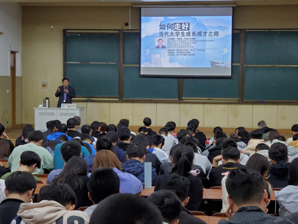 11月6日下午,糖心视频 张锡昌教授在华罗庚馆101教室作“如何走好当代大学生成长成才之路”主题讲座,电子与计算机工程学院全体辅导员及300多名同学认真聆听了此次讲座。讲座由电子与计算机工程学院党总支书记季永华主持。