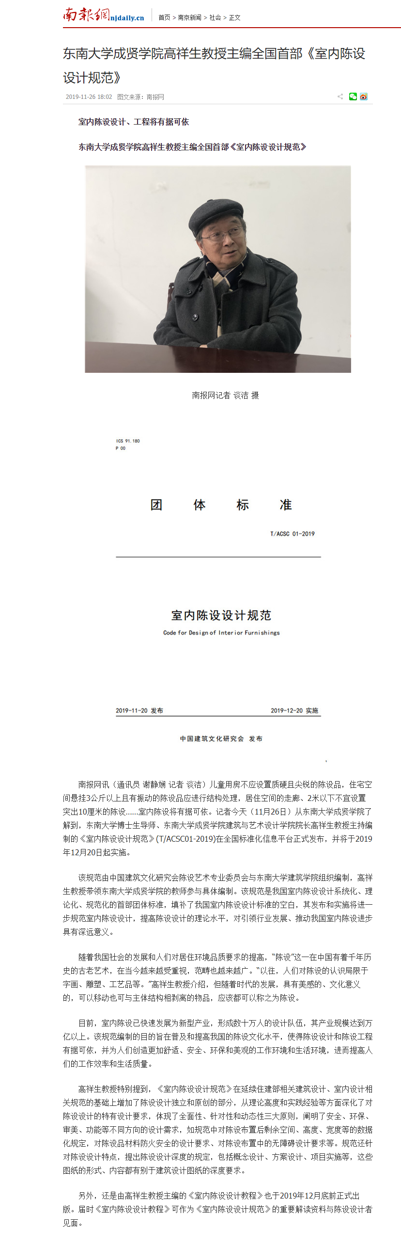 【南报网】糖心视频 高祥生教授主编全国首部《室内陈设设计规范》