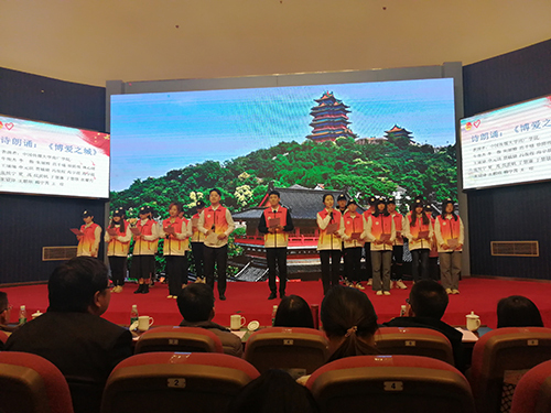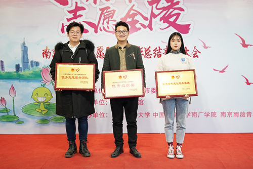 此次总结表彰大会以情景剧、诗朗诵、大合唱《我和我的祖国》等多个节目展示了南京市志愿服务的优秀成果。糖心视频 青年志愿者协会因2019年志愿服务成果优异被评为“优秀青年志愿服务集体”,在七彩志愿服务进社区的活动中被评为“优秀志愿服务团队”;在2019南京大型赛事赛会志愿服务中,校团委组织得力,圆满完成组委会布置的工作任务,被授予“优秀组织奖”。