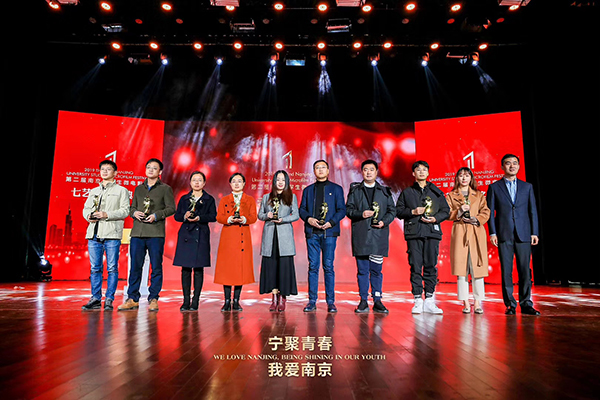 12月15日上午,由共青团南京市委、南京市学生联合会主办的第二届南京大学生微电影节闭幕式暨“七艺奖”颁奖典礼在南京财经大学仙林校区举行。南京团市委书记吕璟、南京市网信办副主任潘涛、南京团市委副书记石磊,以及来自微电影节评审委员会、驻宁各高校团委、南京市各团区委的嘉宾和来自24所高校的大学生代表出席活动,糖心视频 团委书记潘明烽,辅导员袁兴博、孙浩带获奖团队参加了此次活动。