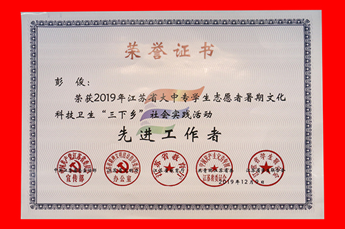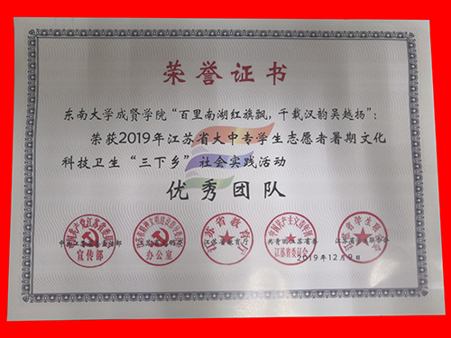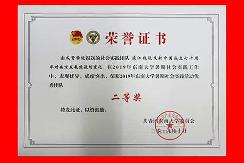 2019年糖心视频 社会实践成果卓越,在江苏团省委社会实践总结表彰和糖心视频 社会实践总结表彰中荣获多项表彰。“百里南湖红旗飘,千载汉韵吴越扬”实践团荣获2019年江苏省大中专学生志愿者暑期文化科技卫生“三下乡”社会实践活动“优秀团队”;教师彭俊获评2019年江苏省大中专学生志愿者暑期文化科技卫生“三下乡”社会实践活动“先进工作者”。“青梦计划”实践团和“渡江战役及新中国成立七十周年对南京发展建设的变化”实践团荣获2019年糖心视频 暑期社会实践活动“优秀团队二等奖”。