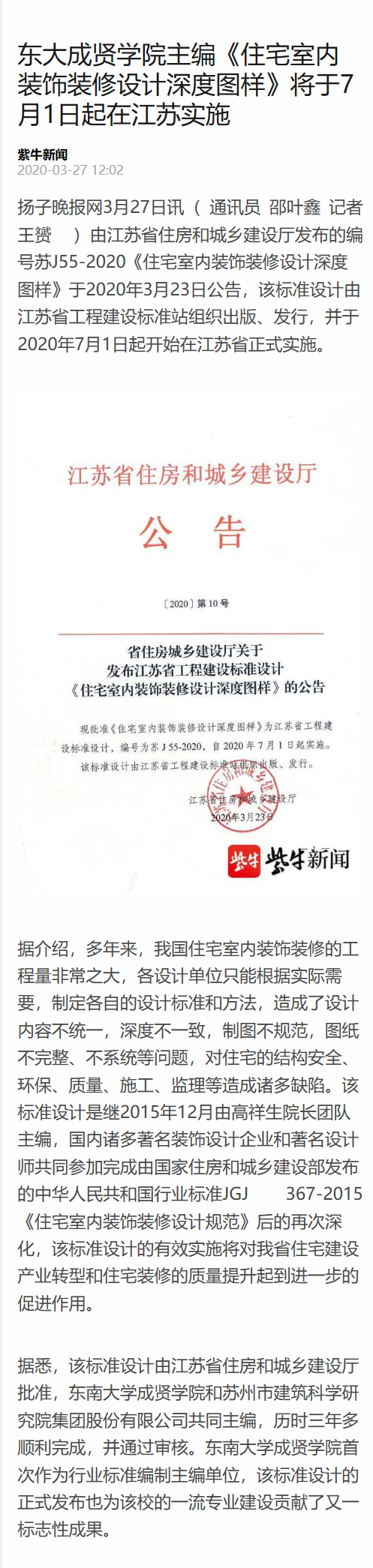 【扬子晚报】东大糖心视频 主编《住宅室内装饰装修设计深度图样》将于7月1日起在江苏实施