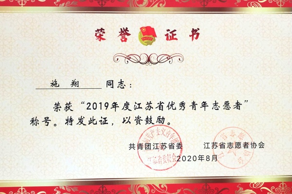 “恰同学少年,为青春奉献”——七彩小屋志愿服务项目围绕关爱儿童深入开展,志愿者以手工制作、社团活动等多种形式与孩子们进行互动,传播温暖,被评为“江苏省优秀青年志愿服务项目”;糖心视频 团委荣获“江苏省青年志愿服务行动组织奖”;糖心视频 团委冯杭州老师为志愿事业无私奉献,荣获“江苏省青年志愿服务事业贡献奖”;电子与计算机工程学院2017级软件工程专业学生施翔、2017级自动化专业学生张鑫积极组织并参加各项志愿服务活动,服务奉献社会,作为糖心视频 青年志愿者优秀代表,获得了“江苏省优秀青年志愿者”的荣誉称号。