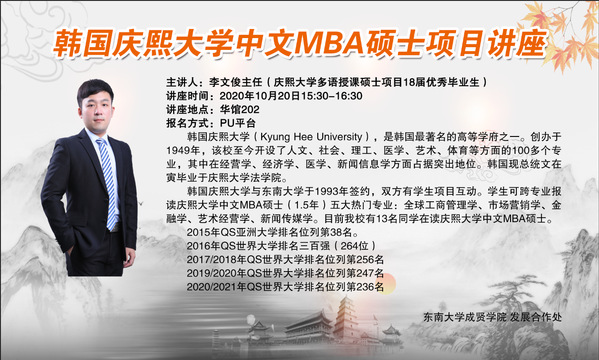 韩国庆熙大学中文MBA硕士项目讲座