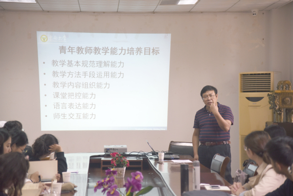 翟玉庆教授以“课程教学基本要求与课程教学建议”为主题,从青年教师教学能力培养目标、课程教学基本要求、课程教学建议以及近年首开课教师授课主要问题等四个方面进行阐述。翟教授指出,青年教师的教学能力要体现在对教学基本规范的理解能力、对教学方法手段的运用能力以及教学内容的组织能力等方面;课程教学基本要求方面要理论联系实际,积极参与课程大纲的制定,基于课程大纲进行课程教学实施;课程教学建议方面要深刻理解“教什么?”“如何教?”和“如何评教?”之间的辨证关系,把握高等教育课程教学基本规律;对于青年教师首开课授课方面主要是提高教学规范意识,苦练教学基本功,真正做到传道授业解惑,激发学生的学习兴趣。