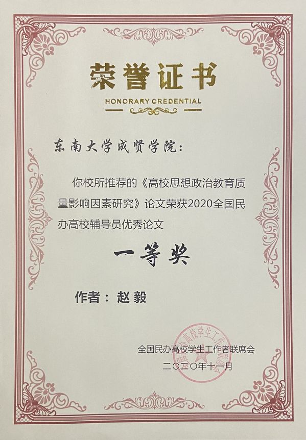 此次论坛围绕“后疫情时期民办高校学生工作创新”主题,通过专家报告、典型报告、创新报告、成长报告等形式,多维视角,内容丰富,互动热烈。为贯彻落实立德树人根本任务,交流辅导员工作有效经验和创新举措,探索新形势下民办高校辅导员工作的新途径,全国民办高校学生工作者联席会还组织开展了2020全国民办高校辅导员优秀论文评选活动,来自全国121所院校235位学生工作者踊跃投稿,经专家评审,62位分获一二三等奖,其中一等奖13位。赵毅老师撰写的《高校思想政治教育质量影响因素研究》荣获一等奖,在全国民办高校辅导员优秀论文集《摆渡》中位列首篇。