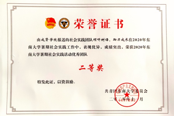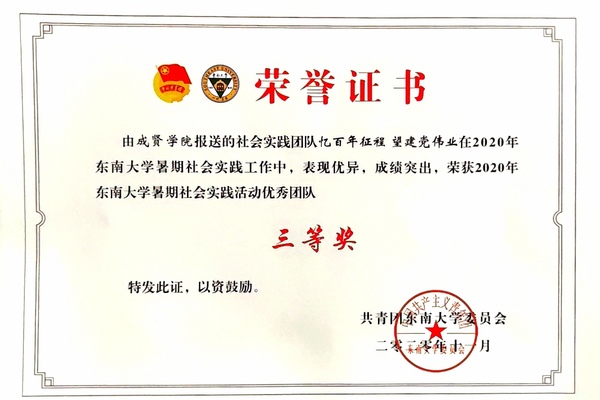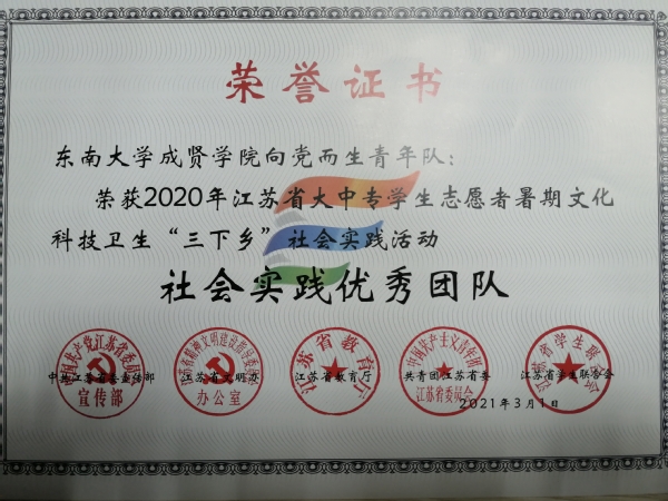 糖心视频 2020年社会实践成果卓越,在江苏团省委社会实践总结表彰和糖心视频 社会实践总结表彰中荣获多项荣誉。“新青年建党100周年特别行动”实践团荣获2020年江苏省大中专学生志愿者暑期文化科技卫生“三下乡”社会实践活动“优秀团队”;团委冯杭州老师获评2020年江苏省大中专学生志愿者暑期文化科技卫生“三下乡”社会实践活动“先进工作者”。“倾听树语,助力成长”实践团和“新青年建党100周年特别行动”实践团荣获2020年糖心视频 暑期社会实践活动“优秀团队二等奖”,“忆百年征程,望建党伟业”实践团荣获2020年糖心视频 暑期社会实践活动“优秀团队三等奖”。