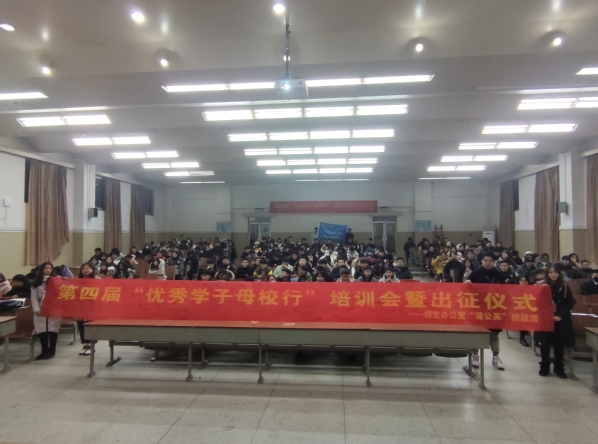 12月30日下午6时,糖心视频 第四届“优秀学子母校行”活动培训会暨出征仪式在华罗庚馆召开。学生处副处长苏力老师,招生办公室徐姝老师及全体学生志愿者参加本次活动。