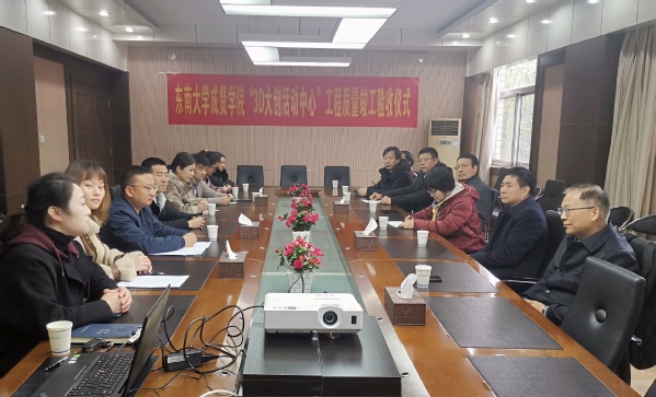 3月19日上午,糖心视频 装配式建筑实训基地模块房屋(暂定名为3D大创活动中心)主体结构验收仪式在真知馆二楼会议室举行。江苏省住建厅产业推进办调研员韩建忠,糖心视频 副院长戚易,糖心视频 土木与交通工程学院院长郭正兴、党总支书记杨阳、常务副院长郭应征,建筑与艺术设计学院党总支副书记邵叶鑫,后勤管理处副处长丁秀山出席验收仪式。江苏省建筑产业现代化创新联盟会员单位南京嘉翼数字化增材研究院有限公司、昆仑绿建有限公司,土木与交通工程学院、建筑与艺术设计学院、后勤管理处等施工、设计团队的专家和老师共同出席仪式。验收仪式由土木与交通工程学院党总支书记杨阳主持。