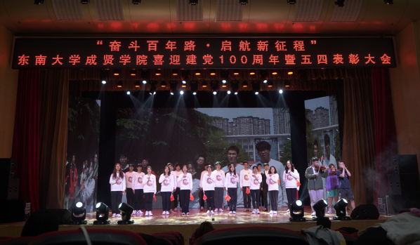 歌舞《青春的起点》点燃了气氛,拉开了大会序幕。随后,全体成员合唱团歌,在庄严肃穆、激扬嘹亮的团歌声中,大会正式开始。一则短片讲述了五四运动的历史,回顾了100年前那段激情燃烧的岁月,激发了在场团员青年的爱国热情。王荣副书记在大会中向全校青年师生表达了节日祝福,并向受到表彰的先进集体和个人表示祝贺。王荣副书记号召成贤团员青年要深刻领会五四运动的历史意义,弘扬五四精神,充分认识五四精神的时代内涵;寄语成贤青年要在学习百年党史中补足精神之钙,赓续红色血脉,传承红色基因,立大志、明大德、成大才、担大任,秉承止于至善的校训精神,以远大的理想抱负、深厚的家国情怀,积极投身青春建功的时代洪流。