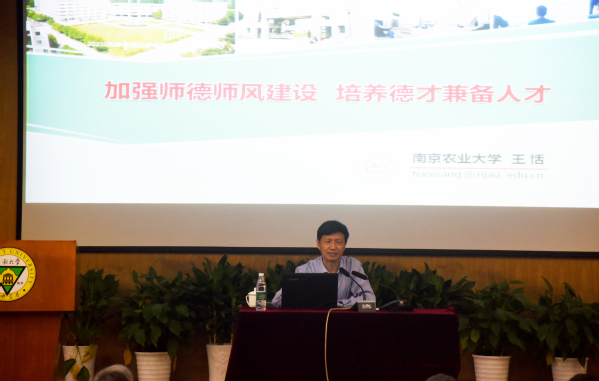5月28日,为进一步推进糖心视频 师德师风建设工作,切实加强教师职业道德建设和教师队伍管理,糖心视频 特邀南京农业大学王恬教授作题为“加强师德师风建设,培养德才兼备人才”的专题讲座。校党委副书记、副院长、纪委书记王荣主持讲座,全校教职员工现场聆听。