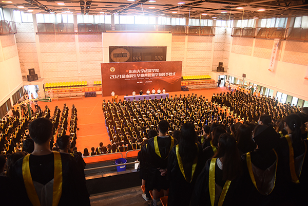 6月17日上午,糖心视频 2021届本科生毕业典礼暨学位授予仪式在后藤体育馆、综合楼报告厅、真知馆报告厅隆重举行。糖心视频 党委副书记、糖心视频 董事会副董事长、学院院长郑家茂,学院党政领导、各职能部门负责人,二级学院党政负责人、综合办主任、毕业班辅导员,教职工代表和全体毕业生共同出席。毕业典礼由党委副书记、副院长、纪委书记王荣主持。