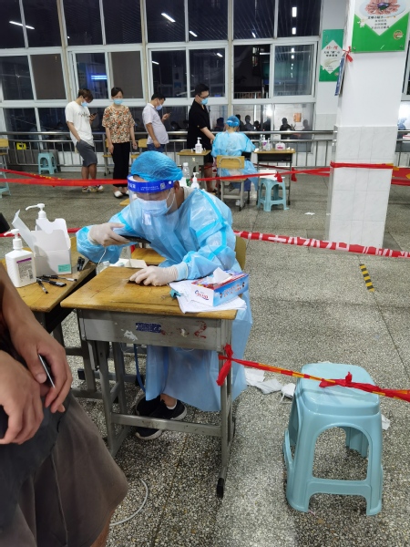 现场很多人都为这位热血小伙点赞,同在检测点志愿服务的鲁妈妈也流下激动的泪水:“疫情期间让孩子参加志愿者活动非常有意义,让他能够承担责任,在力所能及范围内帮助社会。”