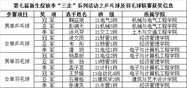新生乒羽联赛获奖名单