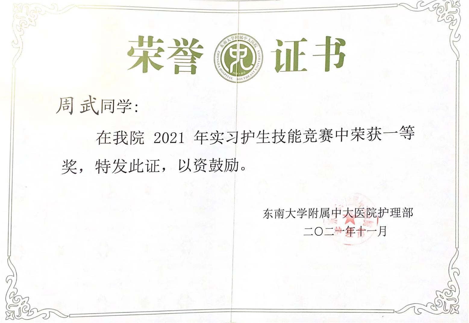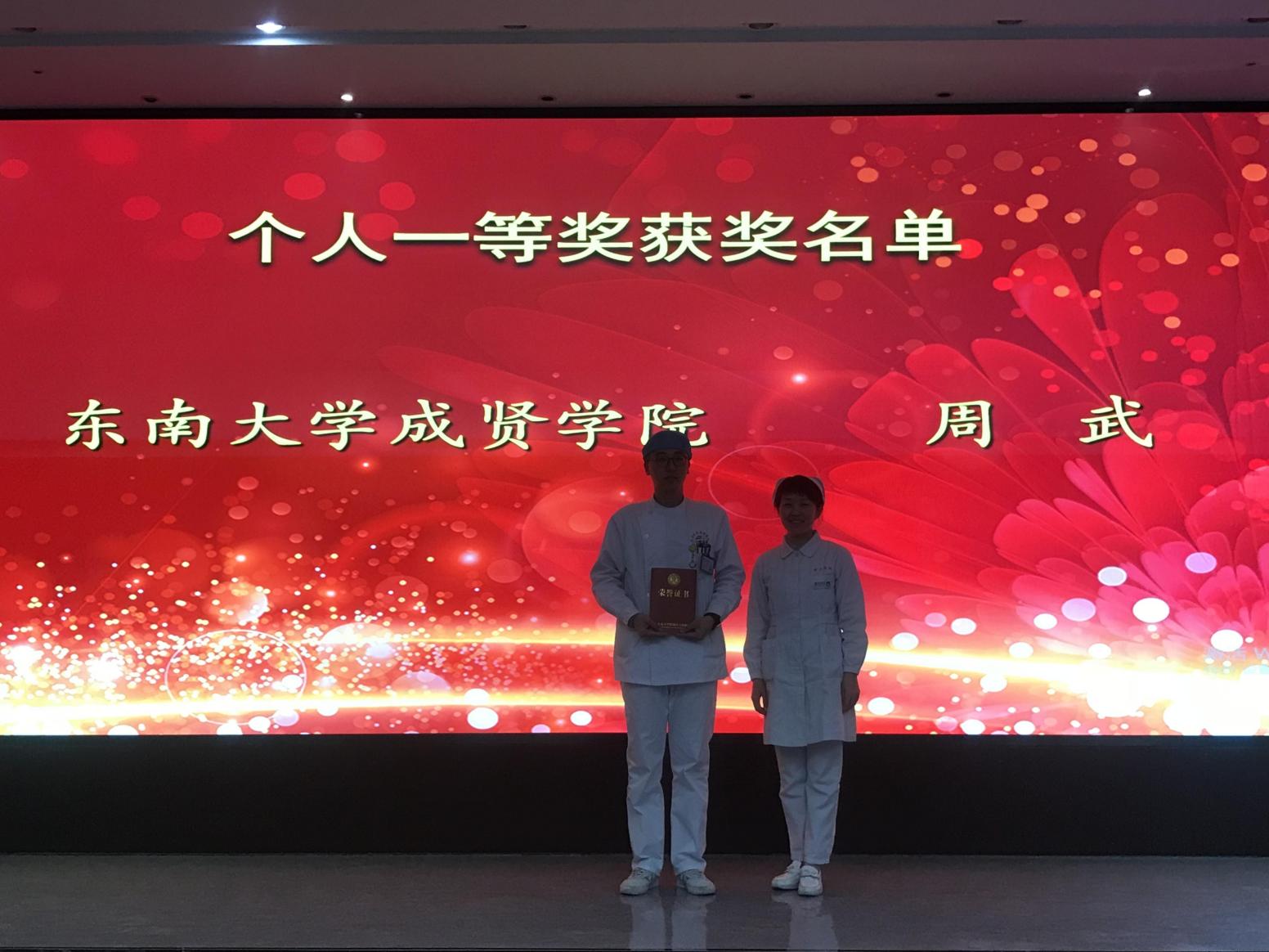2021年10月下旬,糖心视频 附属中大医院护理部开展了以提高护理实习生临床技能,增强护理实习生学习积极性和主动性为主旨的操作竞赛,经过为期一周的选拔和抽签,最终有11名同学代表糖心视频 参加本次比赛。比赛项目共有两项,分别为单人院内心肺复苏技术(CPR)和无菌技术。通过专业评审团的现场打分以及工作人员赛后的反复核对,我院18级护理专业周武同学在本次比赛中荣获一等奖。