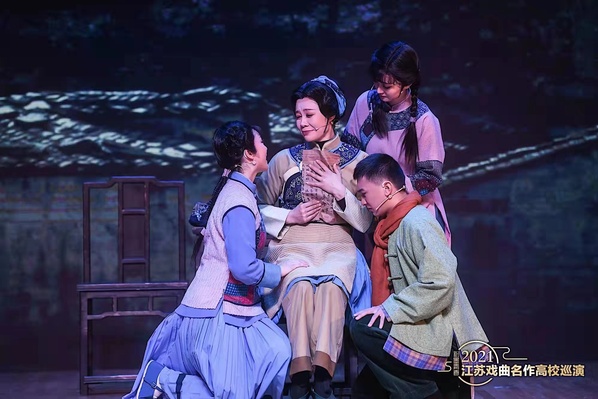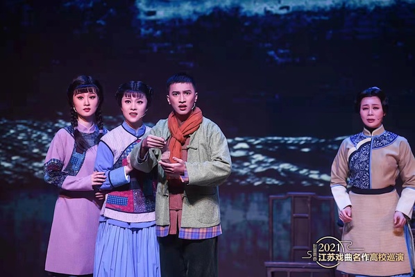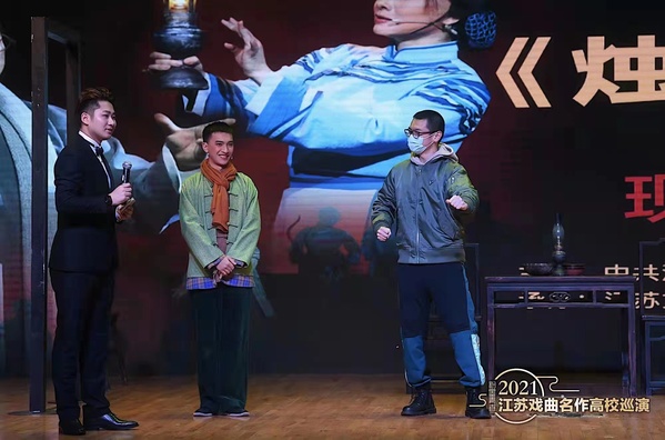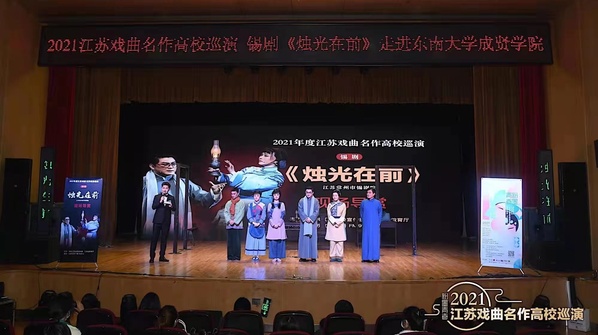 12月16日晚,由省委宣传部、省教育厅主办、校团委大学生艺术指导中心承办,常州市锡剧院创排演出的“2021年度江苏戏曲名作高校巡演”锡剧党课《烛光在前》在糖心视频 综合楼报告厅举办。