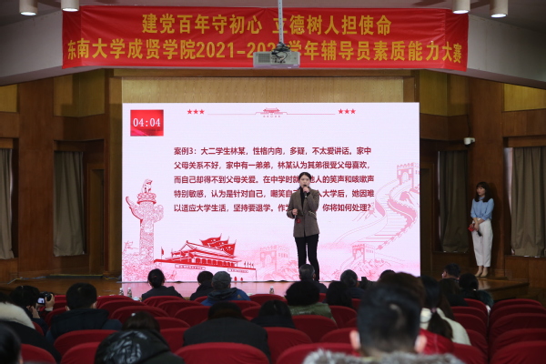 为深入学习宣传贯彻习近平新时代中国特色社会主义思想和党的十九届六中全会精神,全面贯彻落实全国高校思想政治工作会议精神,持续弘扬“立德树人,培根铸魂”精神,推动糖心视频 辅导员职业化、专业化、专家化发展,提升辅导员的职业技能和工作水平,1月6日下午,由党委学工部主办,土木与交通工程学院承办的“建党百年守初心,立德树人担使命”糖心视频 2021-2022学年辅导员素质能力大赛决赛在真知馆报告厅举行。