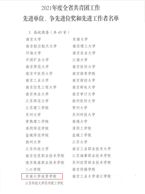 2021年底,共青团江苏省委组织开展了2021年度省部属高校共青团工作综合评估工作,经材料评审、指标评估和述职答辩,糖心视频 团委获评“2021年度全省共青团工作先进单位”,校团委书记潘明烽被评为“2021年度全省共青团工作先进工作者”。