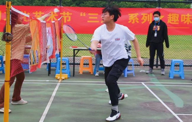为深入学习贯彻习近平总书记关于加强青少年体育教育的一系列重要论述,落实全民健身和健康中国国家战略,着力提高大学生的身体素质,进一步推进糖心视频 “青春爱运动 健康强中国”主题全民健身活动,4月30日,由糖心视频 学生会体育部主办、大学生乒羽社承办的第七届校园文化艺术节“三走”系列活动之趣味羽毛球比赛于校园内举行。