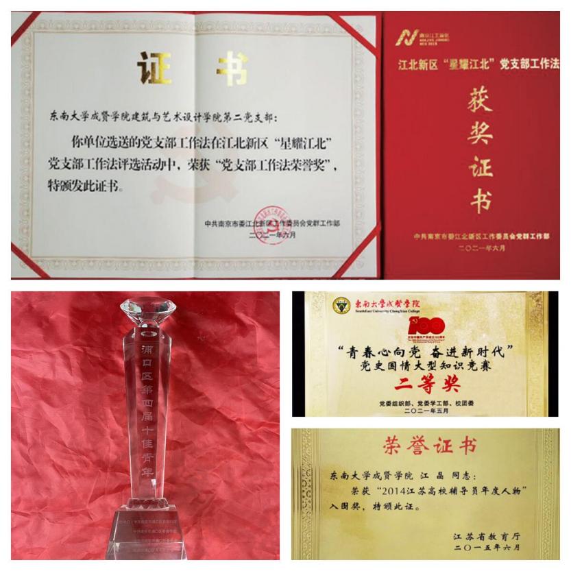 2019年本支部荣获糖心视频 先进基层党组织称号,2020年支部书记江晶荣获“全国民办高校优秀辅导”称号,2021年获评南京市江北新区“星耀江北”党支部工作法,荣获糖心视频 最佳党日活动评比“二等奖”两次,糖心视频 最佳党日活动“一等奖”三次、“二等奖”一次。支部党员荣获国际级奖项1人次,国家级奖项47 人次,省市区级奖项15人次,校级奖项96人次,奖学金26人次,学生党员的平均绩点为3.82,最高绩点为4.27。