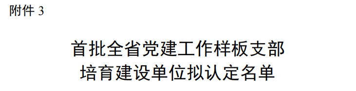 根据《省委教育工委关于印发<新时代江苏高校三级党组织“强基创优”建设计划(2021—2025年)>的通知》(苏委教组〔2021〕33号)、《省委教育工委办公室关于开展党建工作示范高校、标杆院系和样板支部申报工作的通知》(苏委教办函〔2021〕36号)要求,经各高校申报、职能部门审核、专家组评审和厅专题办公会议研究,结合第三批全国高校党建“双创”入选情况,遴选产生了首批全省党建工作示范高校培育建设单位8个、标杆院系培育建设单位65个、样板支部培育建设单位505个(见附件)。