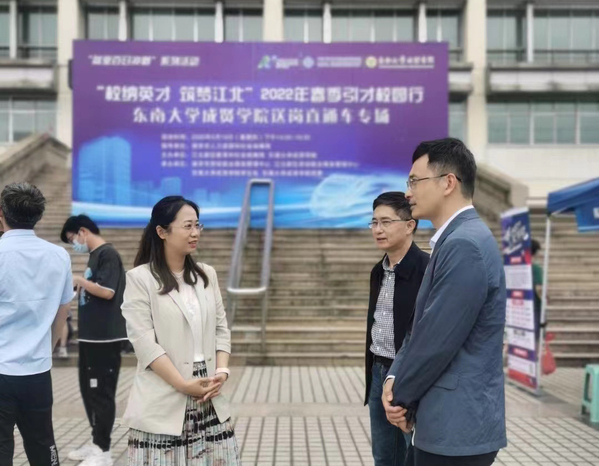三、企业进校。5月19日、20日,学校党委副书记、副院长、纪委书记王荣,学生处处长施杰参加了江北新区、建邺区春季引才校园行走进糖心视频 专场招聘活动。王荣副书记与参会单位代表、学生亲切交谈,悉心了解企业需求和毕业生求职进展,并鼓励毕业生树立正确就业观,抓住机遇,尽早就业。此次参加招聘企业共68家,提供岗位数1100余个,共收取简历430份,186人初步达成就业意向。
