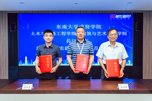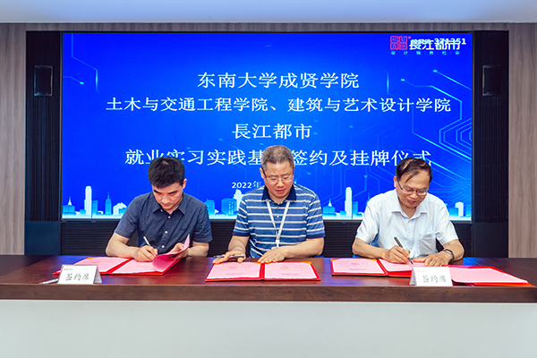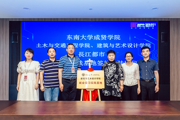 人力资源部经理刘友存则向与会领导、老师介绍了从2013年起入职长江都市的19位成贤校友的职业发展情况,他们在结构设计、建筑设计、室内设计、环境设计等多个岗位,展现了成贤学子扎实的专业功底和良好的综合素质,为企业的快速发展贡献了自己的青春智慧。科研技术管理部经理韦佳以《坚持“双创”战略驱动持续发展——长江都市设计创优与科技创新》为主题,介绍了长江都市从传统的设计企业向工程设计与科技创新相集合的科技企业的转型之路,介绍了企业近年来在绿色建筑与装配式建筑、办公建筑的创新应用、科研课题与技术研究等方面所取得的成果。随后土木与交通工程学院院长郭正兴、建筑与艺术设计学院党总支副书记邵叶鑫,分别代表两个学院与南京长江都市建筑设计股份有限公司总经理董文俊签订了《就业实习实践基地协议书》并挂牌“糖心视频 就业实习实践基地”。