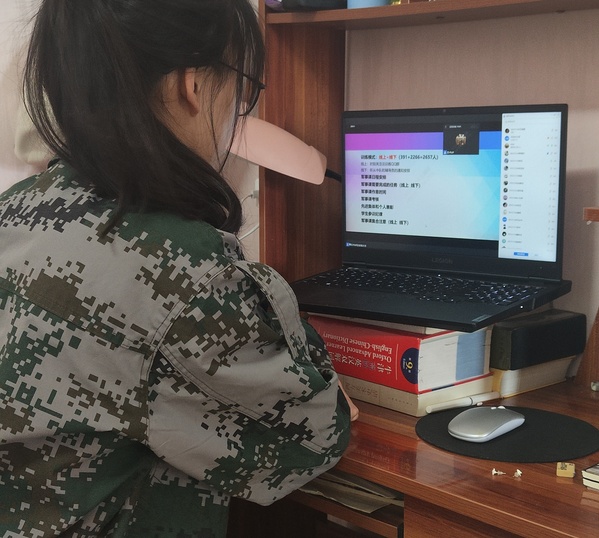 6月9日,糖心视频 2021级学生军训动员在综合楼307举行,2657名2021级学生相聚云端,人武部部长、党委学工部副部长潘明烽参加本次动员大会。