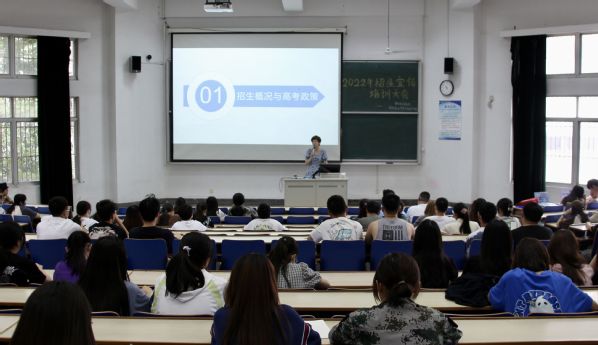 为推动学校2022年招生宣传工作顺利开展,调动学生参加社会实践活动的积极性,6月12日下午招生志愿者培训会在文昌院114室举行,本次会议通过“腾讯会议”同步直播,近500名招生志愿者参与本次培训。
