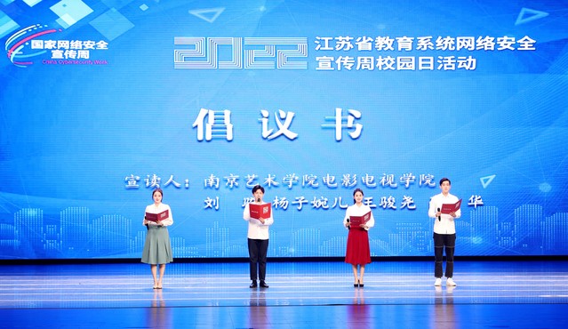 启动仪式上,《江苏省教育系统网络安全暨2022年网络安全宣传周校园日活动倡议书》正式发布,号召广大师生尤其是青少年坚守法律底线,强化安全意识,崇尚社会公德,唱响时代主旋律,做网络法治的建设者、网络安全的守护者、网络文明的推动者、网络正能量的传播者。与会领导和嘉宾还观看了系列主题短片和原创视频作品,欣赏了南京艺术学院师生精彩的主题演出,聆听了江苏省反电信网络诈骗中心专家带来的专题讲座。