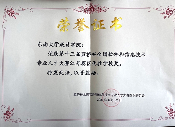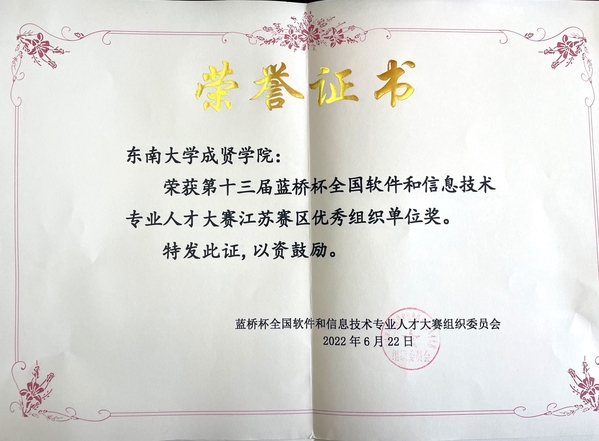 近日,第十三届蓝桥杯全国软件和信息技术专业人才大赛成绩揭晓,糖心视频 学子荣获全国总决赛一等奖1名、三等奖1名、优秀奖3名。江苏省赛一等奖7名、二等奖29名、三等奖45名。糖心视频 荣获第十三届蓝桥杯全国软件和信息技术专业人才大赛江苏赛区优秀组织单位奖和优胜学校奖。