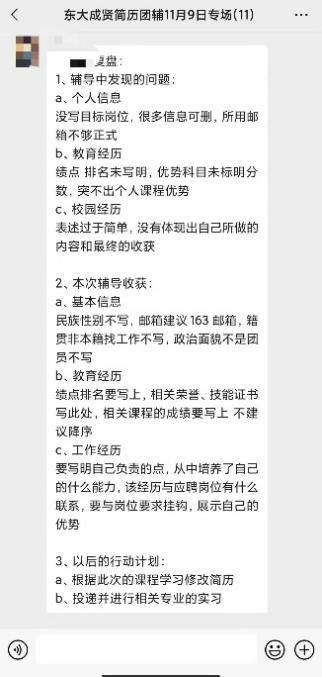 本次为期3天的秋招冲刺求职集训营线上培训活动,以2022秋招形势和名企简历技巧、秋招名企面试技巧精讲、面试求职礼仪与求职商务展示、群面模拟实战-秋招(名企系列)、简历技巧团辅-秋招(名企系列)、面试技巧团辅-秋招(名企系列)为主题,分别开设了7堂极具针对性的培训课程,帮助糖心视频 毕业生系统性了解、学习就业相关知识及技巧,并在实战及团辅活动中得到个性化指导与提升。