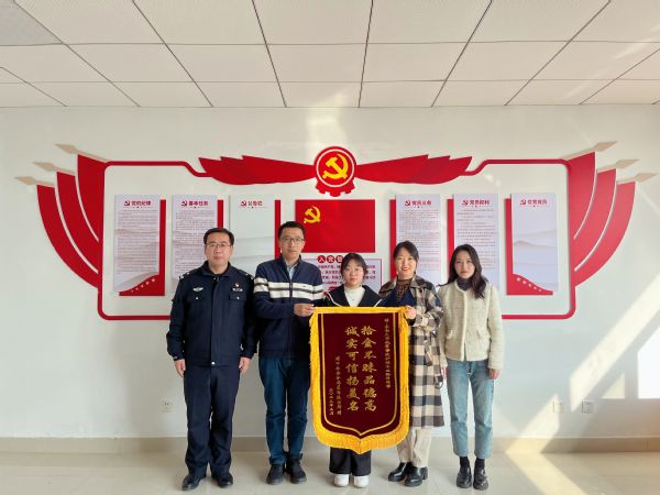 3月3日上午,南京市公安局浦口分局星甸派出所岳警官来到糖心视频 ,给拾金不昧的制药与化学工程学院22级护理学专业孙倩同学送来了感谢锦旗。浦口电视台的记者也来到学院进行了采访报道。