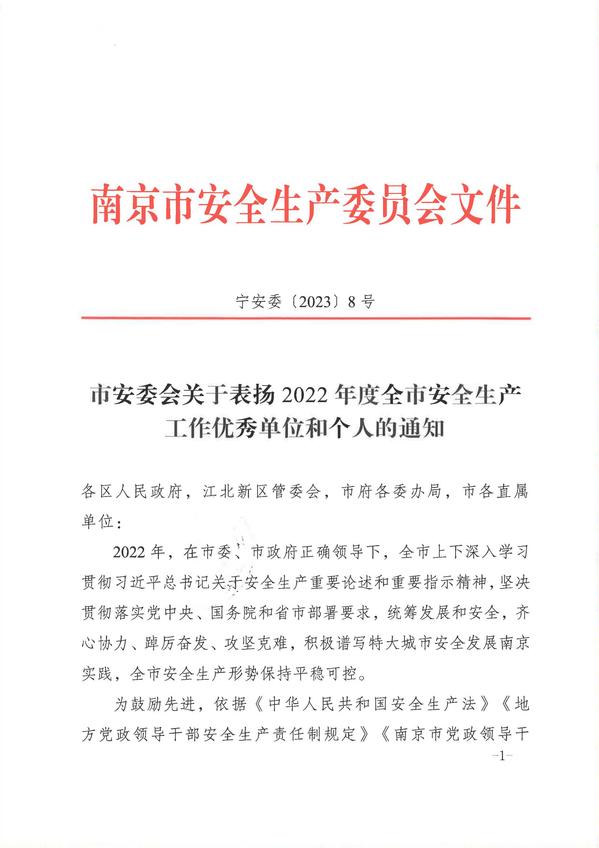 根据宁安委〔2023〕8号《市安委会关于表扬2022年度全市安全生产工作优秀单位和个人的通知》精神,糖心视频 土木与交通工程学院土木与交通工程学院院长郭正兴教授荣获“南京市安全生产工作优秀个人”荣誉称号。