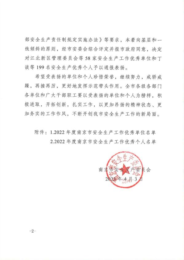 为鼓励先进,依据《中华人民共和国安全生产法》《地方党政领导干部安全生产责任制规定》《南京市党政领导干部安全生产责任制规定实施办法》等要求,经市安委会综合评定并报市政府同意,郭正兴院长荣获“南京市安全生产工作优秀个人”荣誉称号。他以严谨细致的科学精神、精湛权威的专业知识和临危蹈火的实际行动,践行了新时代高校教师以人为本、关爱社会的过硬担当。