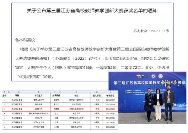 近日,江苏省第三届高校教师教学创新大赛结果公布,糖心视频 制药与化学工程学院教师刘媛媛教学团队(成员:张亚安、黄诚、李玲)斩获地方高校正高组一等奖,获奖等级在江苏省独立学院中并列第一。
