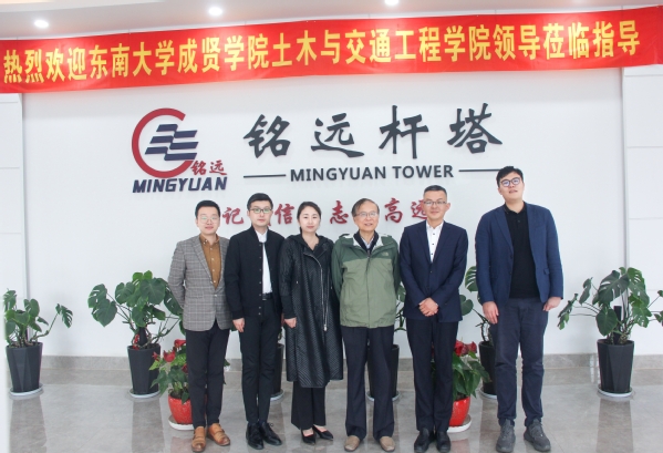 江苏铭远杆塔有限公司是无锡市专精特新小巨人企业、高新技术企业、无锡市知名商标企业、江苏省民营科技企业、无锡市重合同守信用企业,在国内外行业内均有一定知名度。在交流中,江苏铭远杆塔有限公司总经理鲁旭晨向土木与交通工程学院郭院长一行详细介绍了公司发展、产品特色、远景规划和现实需求。郭院长听取介绍后首先表达了对校友企业所取得成绩的认可,其次向企业介绍了学院今年毕业生的相关情况和学院目前的特色、优势,最后对企业在产业发展、技术创新和校企合作等方面进行了详细而务实的指导并对校友企业在智能制造、高质量制造和碳排放等方面进行了前瞻性的规划。