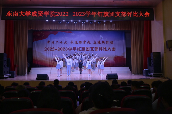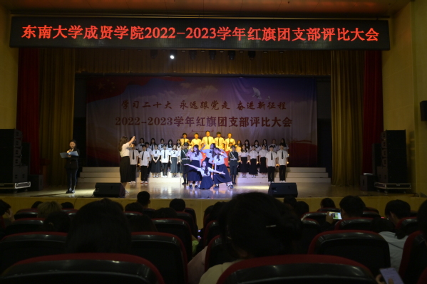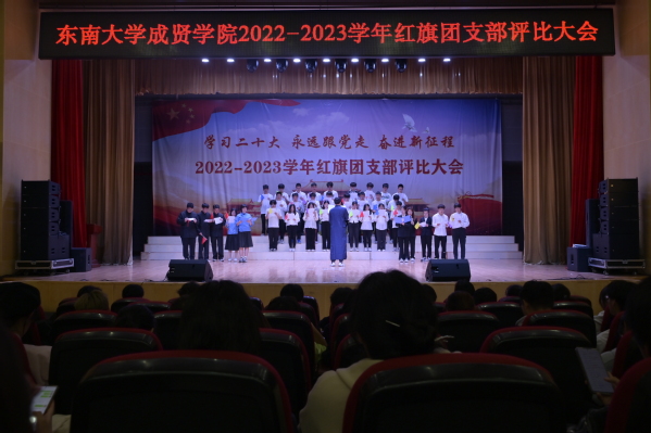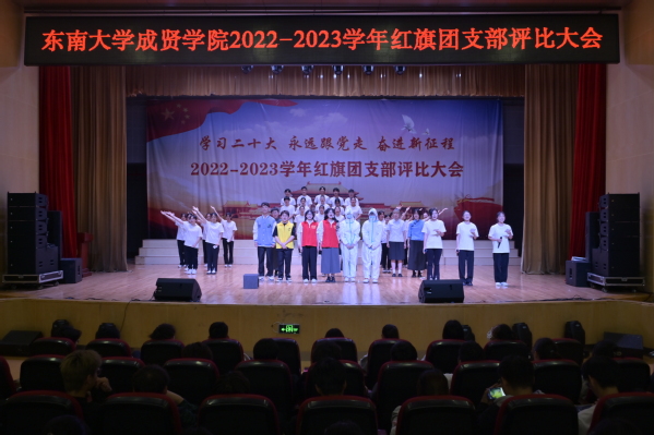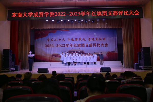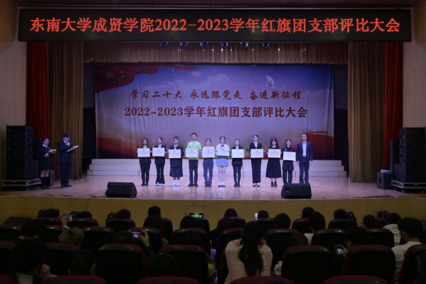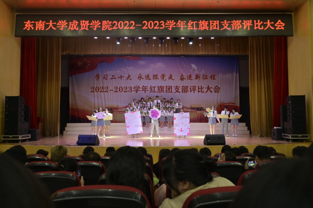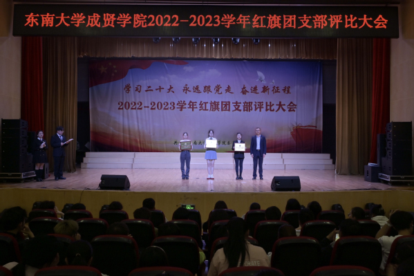 大会以歌声嘹亮的《光荣啊,中国共青团》团歌拉开序幕。本次评选大会分为支部风采展示和提问答辩两个环节。评委根据各支部前期递交的材料,从支部思想建设,班风、学风建设,现场展示、答辩、老师指导参与情况等各方面进行综合打分。参评支部根据赛前抽签顺序依次展示支部风采,并在3分钟内回答评委的现场提问,展现了各支部的青春活力和凝聚力。经过激烈角逐,最终21建筑学1团支部、21财务管理2团支部和21风景园林1团支部荣获“活力团支部”荣誉称号,其中21建筑学1团支部荣获新学年“红旗团支部”称号。20风景园林1团支部的汪弘磊同学作为上一学年的红旗团支部代表进行发言,分享了支部的经历与经验,表达心声,寄托希望。最后,校团委书记潘明烽老师分别为获奖支部颁奖,并为新任红旗团支部授旗。