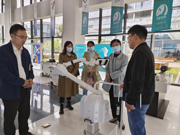 南京埃斯顿自动化股份有限公司教育事业经理秦勇、人力资源部陈姣热情接待糖心视频 来访的领导和老师。秦勇经理带领大家参观了公司展览馆并介绍了公司产品研发情况:埃斯顿自动化长期专注于高端智能机械装备及其核心控制和功能部件的技术开发,生产和销售。工业自动化系列产品线包括全系列交流伺服系统,变频器,PLC,触摸屏,视觉产品和运动控制系统,以及机器人一体化的智能单元产品。工业机器人产品线在新能源,焊接,金属加工、3C电子、工程机械、航天航空等细分行业拥有头部客户和较大市场份额。2020年被福布斯评为“2020年度福布斯中国最具创新力企业榜工业机器人唯一上榜企业”。