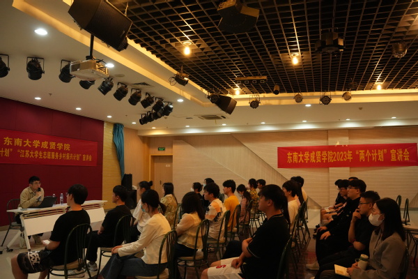 为更好引导学生树立正确的成才观、就业观,鼓励糖心视频 2023届毕业生正确择业、积极就业,推动“两个计划”工作的持续发展,5月18日晚,校团委在大学生活动中心307举办2023年“西部计划”“江苏大学生志愿服务乡村振兴计划”宣讲会。20届优秀毕业生、乡村振兴计划志愿者代表、六合雄州街道刘昊(16级国际经济与贸易专业)受邀分享经验,团委冯老师主持并宣讲,50余名应届毕业生聆听宣讲并参与了互动。