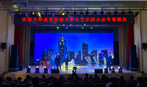 5月19日晚,由校团委、学生处、保卫处主办,大学生艺术指导中心话剧团演出的反诈教育小品专场演出在综合楼报告厅举行。团委书记、学生处副处长潘明烽,泰山街道辖区派出所民警陆建斌、保卫处老师及全校600余名学生生共同观看了此次演出。